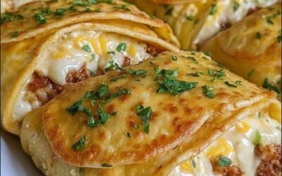 These Loaded Cheesy Pocket Tacos are the ultimate fun, handheld meal! A flavorful and creamy taco filling is wrapped in…