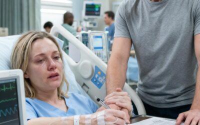 From my hospital bed, surrounded by the hiss of oxygen and the steady rhythm of monitors, my husband squeezed my…